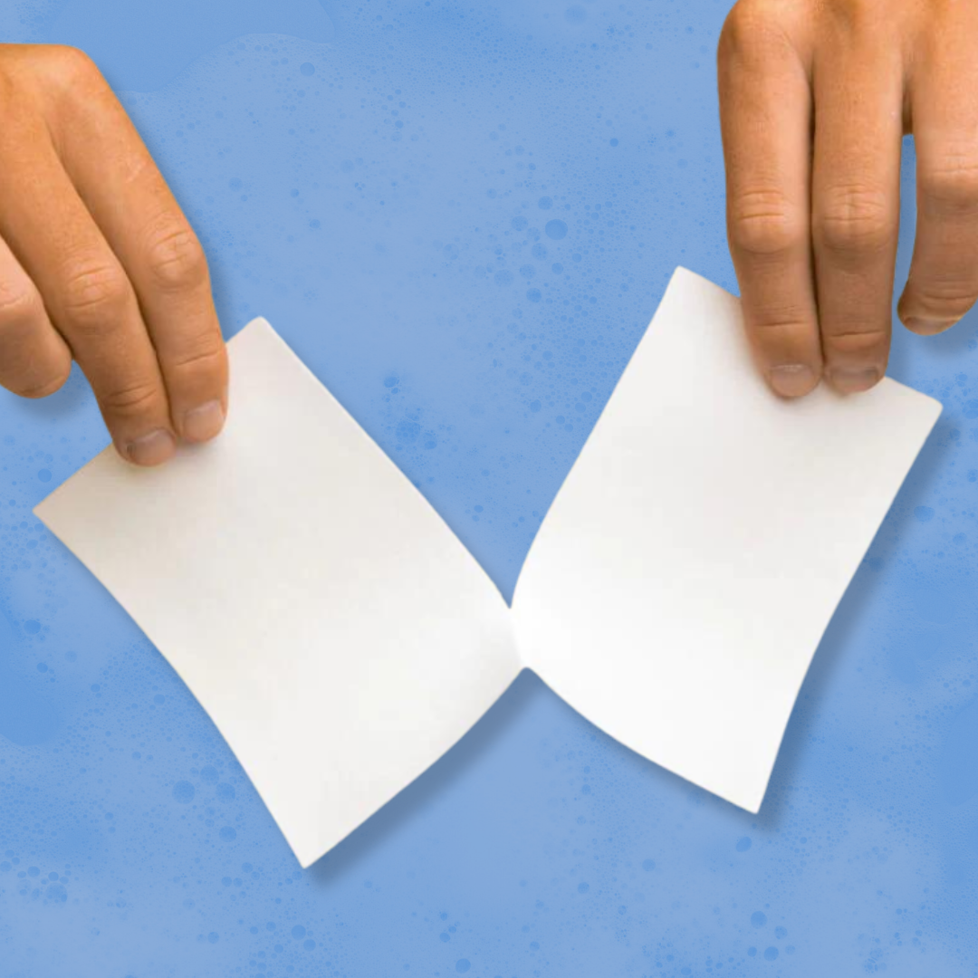 Onze nieuwe en verbeterde vaatwasformule is 3x sterker, dus voor een volledige wasbeurt heb je slechts een halve Strip nodig.